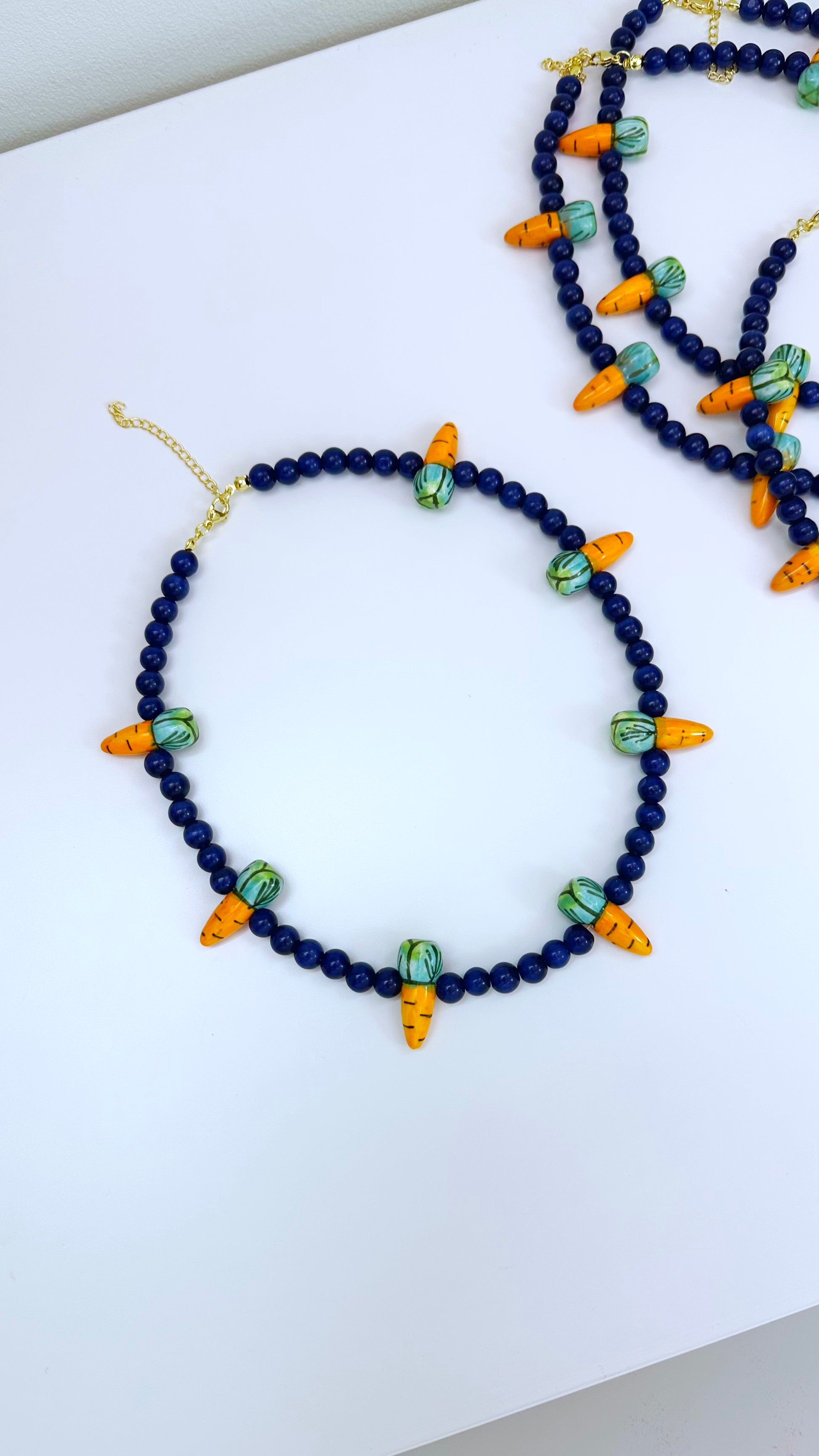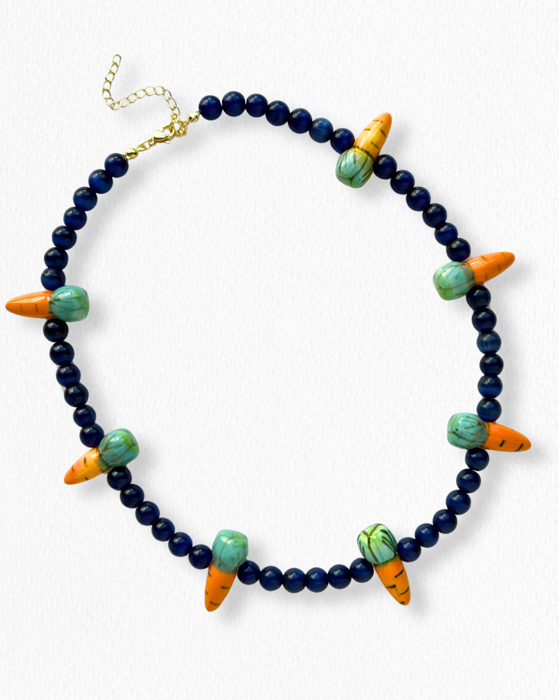 Collar en ojo de gato y zanahorias en porcelana